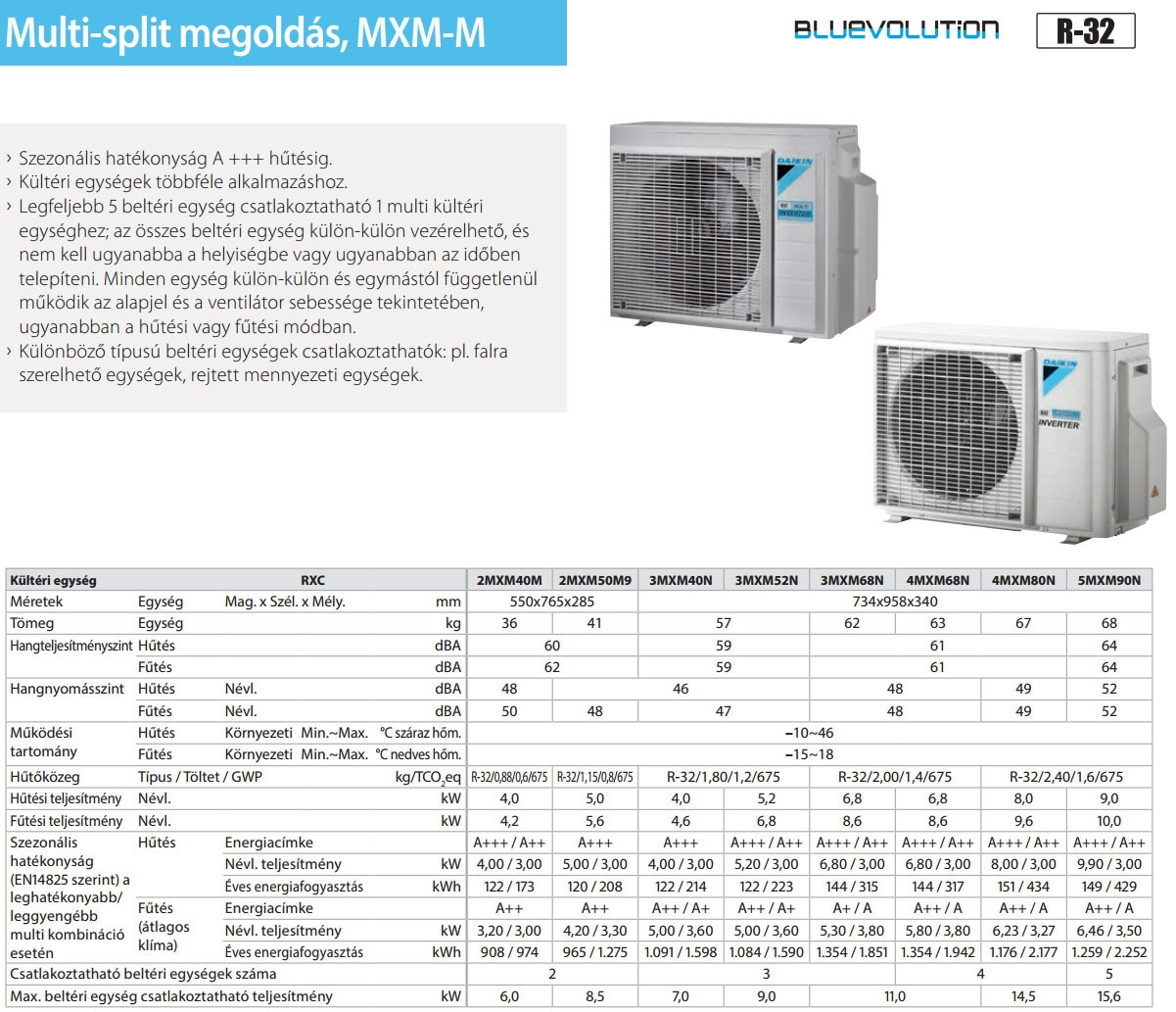 A Daikin 4MXM80A8 Multi klíma kültéri egység (max. 4 beltéri egységhez) fontos tulajdonságai:
