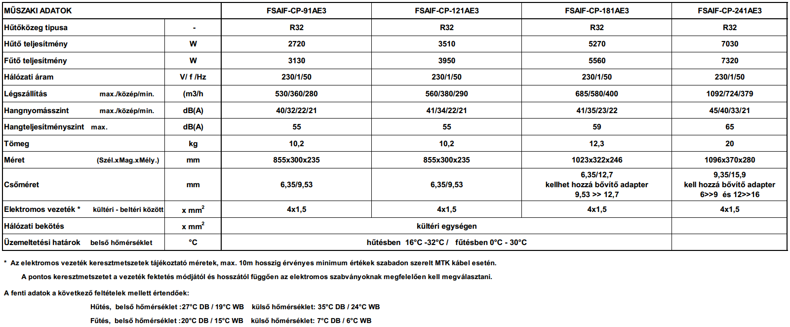 • Hűtő teljesítmény : 3.2 (0.6 - 3.6) kW