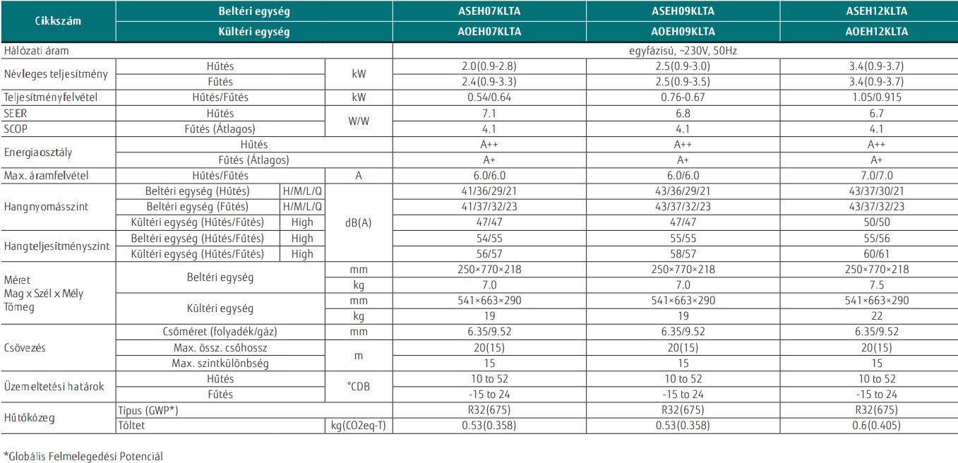 • Hűtő teljesítmény : 3,4 (0.9-3.7) kW