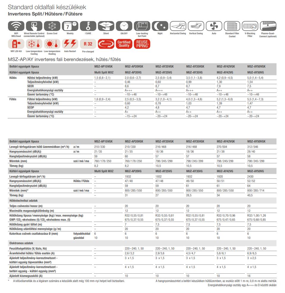 A Mitsubishi MSZ-AY50VGKP / MUZ-AY50VG Inverteres Split Klíma Plasma Quad szűrővel fontos tulajdonságai: